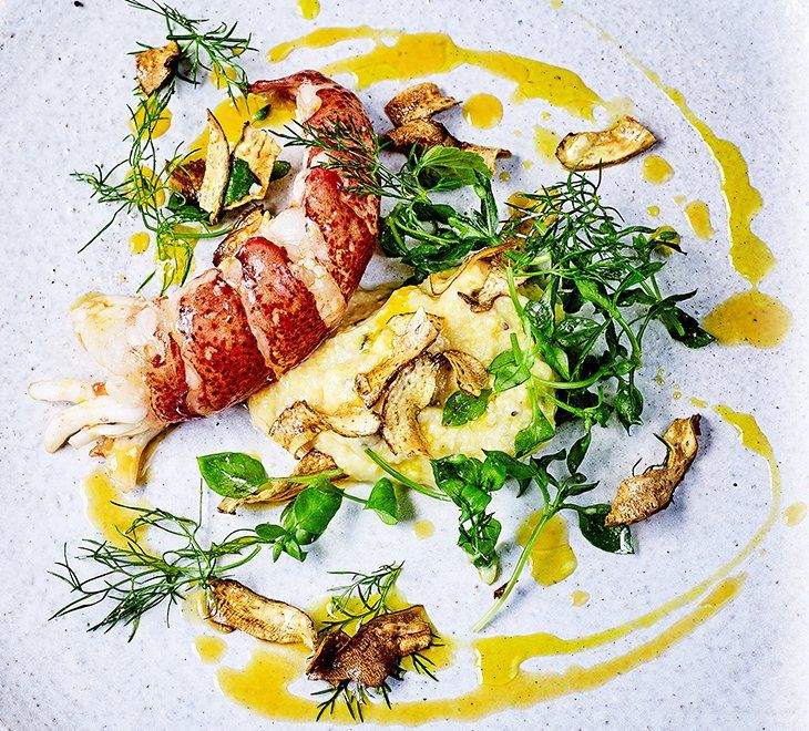Carne rojiza y moteada de textura firme y un sabor suave característico del bogavante.